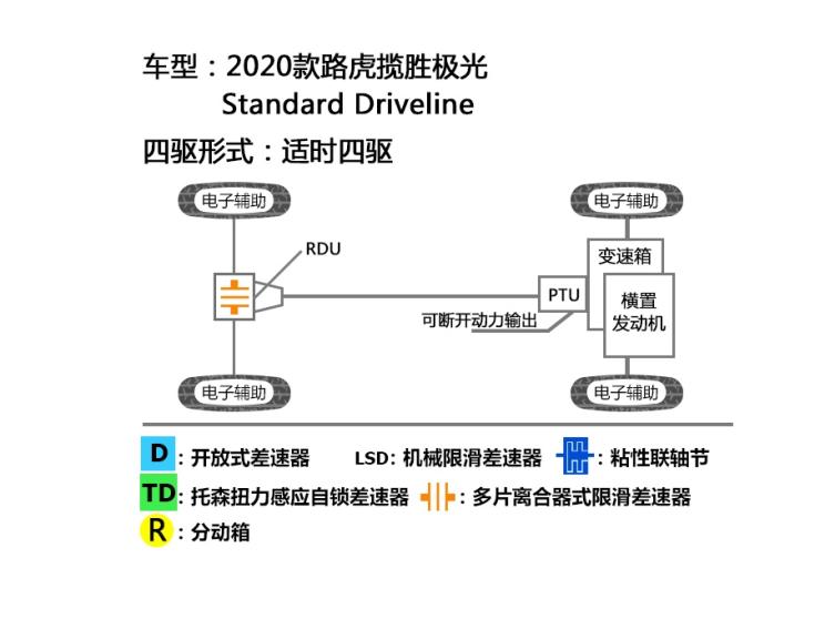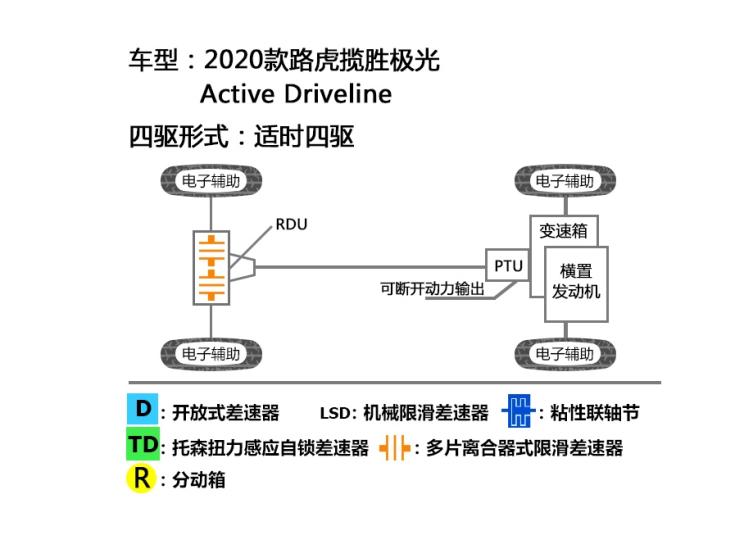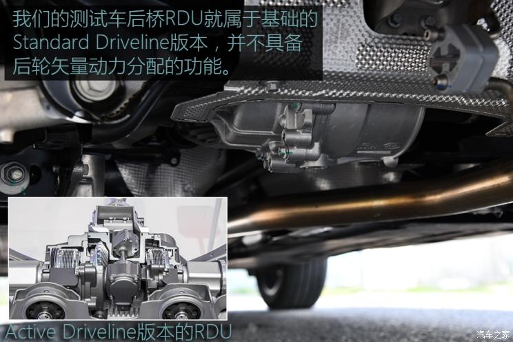 这套智能四驱系统最大的特点是它可将全轮驱动组件与变速箱彻底分开,可在行进中变为纯前驱的行驶状态,以此降低传动损耗达到节能减排的目的。Standard Driveline和Active Driveline两个版本的四驱系统硬件最大差异集中在RDU(后桥驱动装置),我们的测试车配备的则是前者的RDU,具备后轮扭矩矢量控制功能的RDU(Active Driveline版)有可能会成为全系选装的组件,具体配置情况还是要等最终上市之后的配置信息。