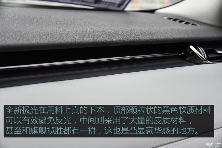 相比于外观内饰的变化更巨大,最新的设计语言不论是豪华、科技还是时尚感都是同级领先的水平,再加上大量高品质皮革面料的包裹,只看内饰的话跟揽胜比都不输,这也是全新极光最大的竞争力。尤其是这个云白檀黑配色风格,自带高级属性。