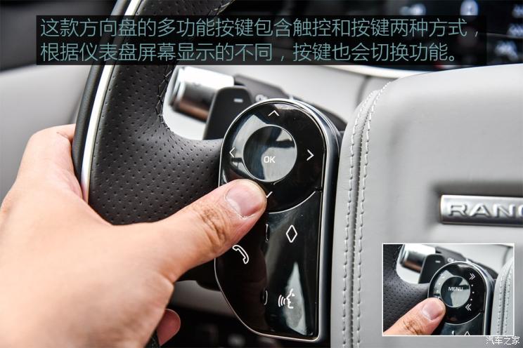 这套内饰不仅用料高级看着好,功能性上也是目前市面上同级SUV中最齐全的,12.3英寸的全液晶仪表可以全屏显示导航地图,也可以显示车身越野状态,还有大尺寸HUD帮助,所需要的信息基本都能在主驾视线范围内找到。不过方向盘上的多功能按键操作起来因为功能太多,会感觉有点繁琐,触控板与实体键结合省下了按键空间但用起来需要时间适应。