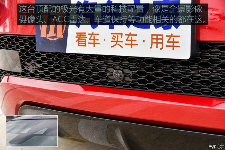 车尾同样是以拉伸横向视觉为主旨,包括尾灯和黑色饰板在内,都让它看起来更宽和低矮,给人下盘更扎实的感觉,这也是极光出众颜值的秘诀之一。但它只是看起来低矮,实际上拥有212mm的离地间隙,接近角为22°,离去角为30.6°,涉水深度也达到了600mm,这些数据在同级中都有优势。