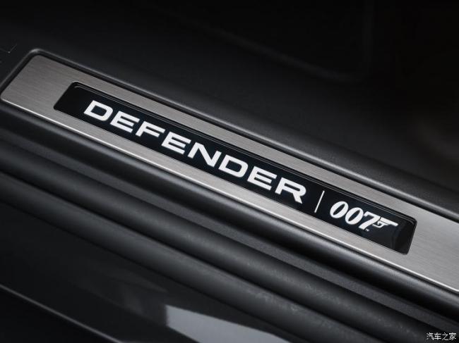 内饰部分,新车依旧采用全液晶仪表盘搭配四辐式多功能方向盘,中控多媒体显示屏采用了嵌入式的设计,下方保留了部分物理控制按键以及空调控制旋钮,搭配电子换挡机构以及全黑的内饰颜色搭配,让新车内部看上去更加帅气。值得一提的是,新车在中控显示屏的开机画面中、车门迎宾门槛处也都标有“DEFENDER|007”标识,而中控台侧面则印有“SV Bespoke”定制限量标识,细节到位。