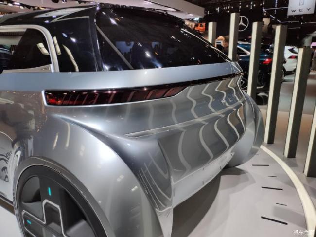 作为WEY打造的一款全新概念车,新车前大灯组采用贯穿式设计,搭配下方镀铬开口装饰,给人感觉非常具有层次感。同时新车的前轮设计几乎达到了车头最前端,与此同时后轮同样靠近尾部,这种布局尽可能的将内部空间提升至最大水平。