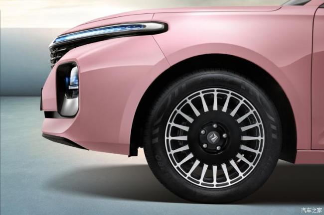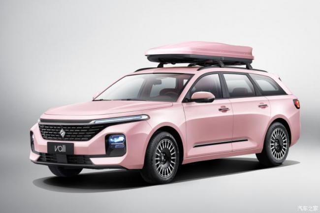 Valli桃源粉定制版车型采用饱和度较低的淡粉色,营造出浪漫与纯真的气息。车顶行李架上加装了行李箱,让整车更有休旅车的感觉。同时新车还更新了全新样式的星芒多条辐轮圈。