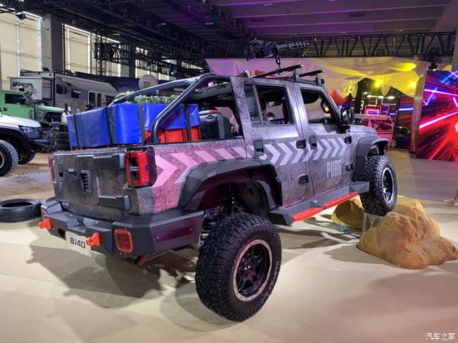 另一台北京BJ40改装车定制了一套“吃鸡”风格的套装,新车拥有重新设计的前保险杠和包围套件,更多直线条的设计让新车看起来更加具有硬汉风格。同时,新车还在车顶增加有独特的武器位于救援设备。此外,新车还将使用定制的防脱轮圈和AT轮胎。