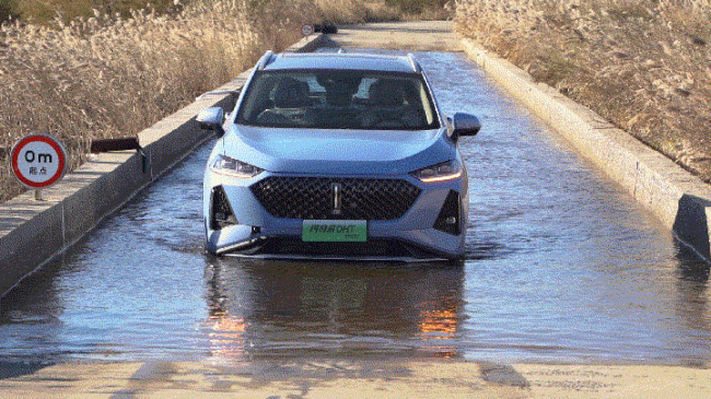 浸水试验模拟的是车辆遇到暴雨或者积水时的情况,用来测试电池包的密封性和防水性。测试中使用的是整车浸水的方式,将车辆直接驶入300mm的积水环境中,在浸泡超16小时后,通过玛奇朵DHT-PHEV配备的智能泊车功能,外遥控车辆驶离积水。过程中车辆并没有因为水浸泡,出现密封性不佳、漏电等情况。这样的测试条件,能覆盖车辆日常涉水行驶的需要,让用户雨天用车更为放心。