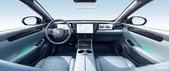 内饰设计上,零跑C01采用简约现代的设计理念,内舱采用随形流动设计,以中控台作为座舱核心,与两侧车门构成了广角一体设计,同时搭配三联屏设计,在视觉上营造更为宽敞、科技的感受。
