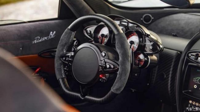 在车内部分,新车依然保留了帕加尼一直延续着机械感十足的风格,挡把下方裸露的挡杆传动机构,粗暴的碳纤维纹路,棕色皮质、木材与Alcantara材质相辅相成,突显出独特之美。
