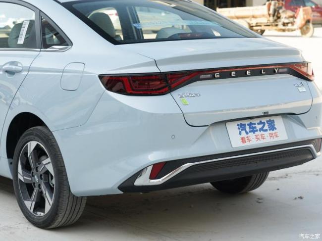 车身侧面,帝豪L 雷神Hi・X拥有标准的三厢轿车造型,笔直的腰线视觉效果干练,充电口设置在左前翼子板处。这款车长宽高为4735/1815/1495mm,轴距为2700mm。贯穿式尾灯由258颗LED光源组成,也是当下消费者喜好的设计。
