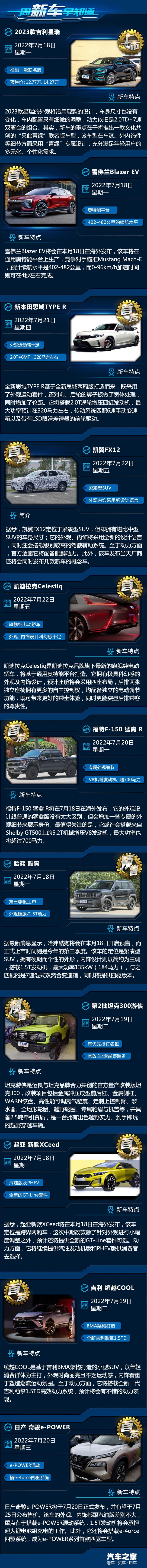 [本站 资讯] 各位网友大家好,又到一周新车早知道的时间了。从目前手上的资料显示来看,在即将到来的一周有较多的新车即将上市/首发亮相,就让我汇总起来给大家看看吧。