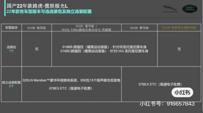 [本站 资讯] 日前,国内社交媒体曝光了一组疑似新款揽胜极光L的配置清单,新车将针对现有车型款式进行调整,取消首发版车型,并新增一款科林斯古铜特别版(暂时定名)替代。据悉,新车将会在8月份正式上市。