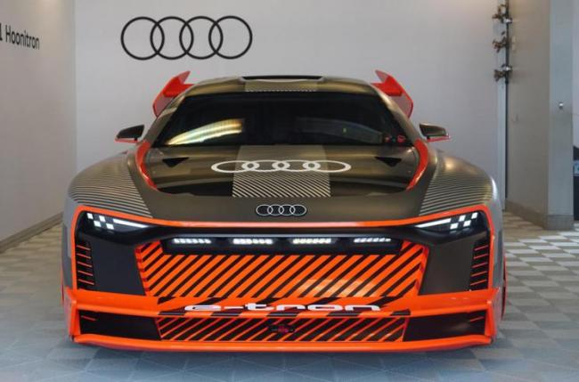 [本站 新车首发] 在8月19日圆石滩车展期间,奥迪运动为Ken Block打造的奥迪S1 e-tron Quattro Hoonitron亮相,该车搭载大量空气动力学套件,十分有气势。