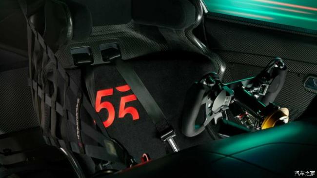 内饰方面,AMG GT3赛车内部采用轻质铝合金管架机构,并焊装防滚架。此外,还装备了数字赛车仪表盘、多功能赛车方向盘、碳纤维赛车座椅等。此外,“Edition 55 – 1 of 5”字样的座椅刺绣也凸显了它的特别之处。