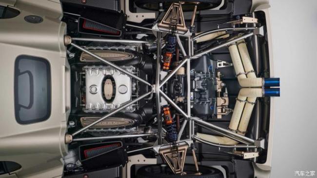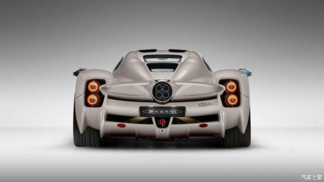 车尾部分,新车尾部的造型也是汲取了一些家族史的设计理念,例如整体椭圆形的散热口加上圆形的中置四出排气布局,让新车展现出了非常战斗的属性。此外,新车还配备了双主动式扰流板的设计,这一功能也是从Huayra上继承下来,配合纵向排列的圆形尾灯组,将帕加尼的经典元素一一展现。