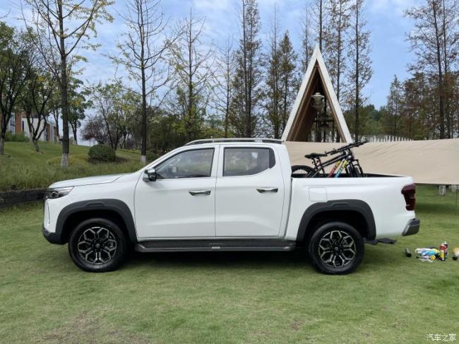 动力方面,新车搭载蓝鲸新一代2.0T涡轮增压四缸汽油发动机,最大功率为233马力(171千瓦),最大扭矩为390牛・米,传动系统匹配采埃孚的8速自动变速箱,并有四驱系统可选。此外,新车还采用了前双横臂式、后五连杆式的悬架结构,增强了皮卡车型的驾乘体验。