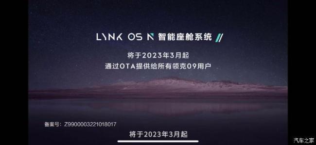 进入车内,同样是熟悉的配方,熟悉的味道,不过值得一提的是,新车新增晨雾灰配色,营造出一种更加大气的座舱氛围。同时,新车配备LYNK OS N智能座舱系统,集成骁龙8155芯片,据悉,该功能将会从2023年3月起,通过OTA的方式提供给所有领克09用户。