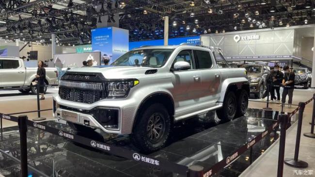 [本站 新车首发] 2023上海车展期间,长城炮联合超境汽车带来全新车型CYBERP!CKUP,这款车基于长城6×6超级越野平台打造,拥有更强的越野能力。