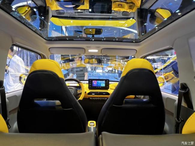 熊猫mini方方正正萌宠的造型引人注目,配合黄色的整体车漆以及鸭子涂装,让它更显可爱。车身尺寸方面,新车长宽高分别为3065/1522/1600(1610)mm,轴距为2015mm,其定位为微型电动车。新车车内也以黄色为主,配备9.2英寸窄条幅式液晶仪表搭配8英寸的悬浮式中控屏,新车提供手机App远程控制功能,可实现远程寻车、车况查询、远程解锁、远程开启空调和后备厢等。熊猫mini还配备了电动车窗、倒车影像、后倒车雷达等配置。