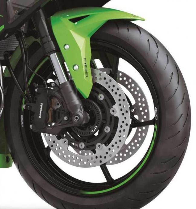 配置方面,ZX-4R采用了Showa SFF-BP倒置前叉,带有预载可调设计,后悬架使用Showa品牌的BFRC-lite避振,与Ninja ZX-10R看齐,并且可调节预载、压缩和回弹阻尼,能够在赛道环境提供足够的支撑性。前刹车采用双290mm刹车盘搭配辐射式卡钳的设定,后刹车采用220mm单盘,能够在赛道上提供充足的刹车性能。