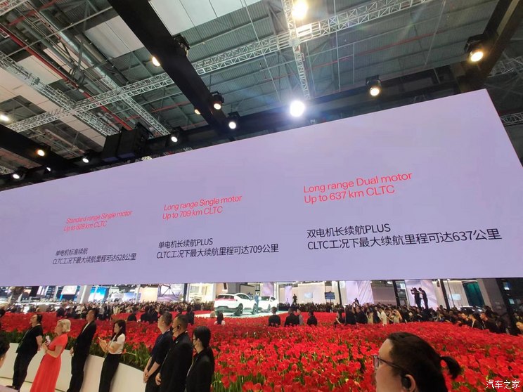 动力方面,新车将有单电机版和双电机版,双电机最大功率400kW,搭配一块容量为102kWh的电池,0-100km/h加速3.8秒,续航预计在500-600km之间,CLTC工况最大续航里程为709km。