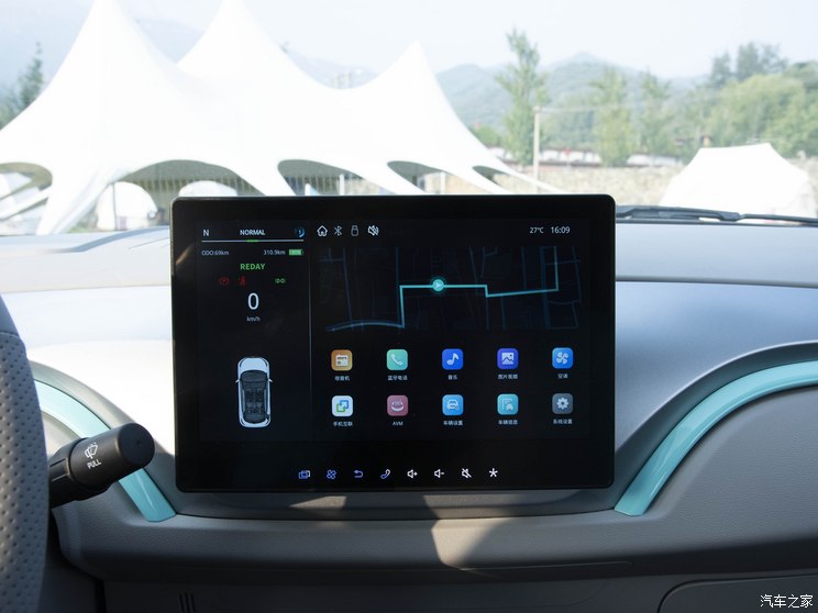 内饰方面,该车整体采用较为简洁的设计风格,中控台加入了青色饰条进行妆点,配合悬浮式大尺寸中控屏,以及一体式座椅,让这款车看上去十分年轻化。此外,易至EV3青春版全系搭载了手机互联功能。