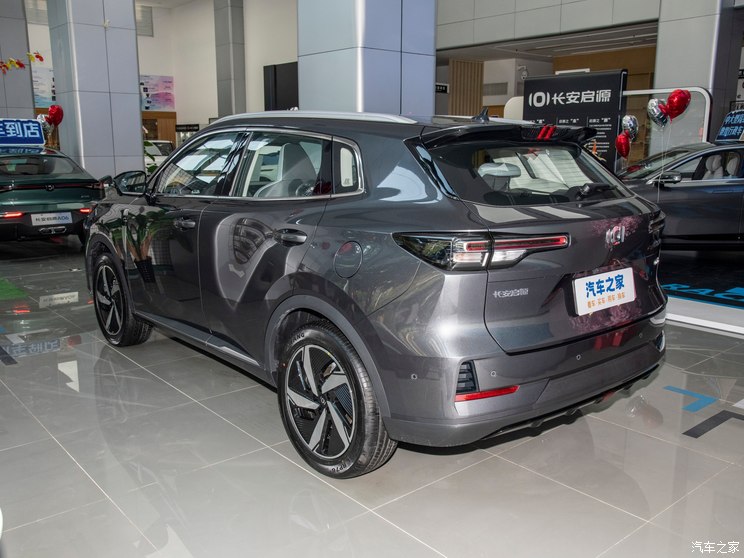 内饰方面,经典的长安家族式风格设计,中控台设计有层次感,全液晶仪表盘、悬浮式中控屏位于不同的水平线上,空调出风口是贯穿式设计。异型方向盘看上去具有一定的运动感,中控台下部拥有无线充电板,排挡控制区控制按键设计也比较有特点。新车还拥有全景天窗。