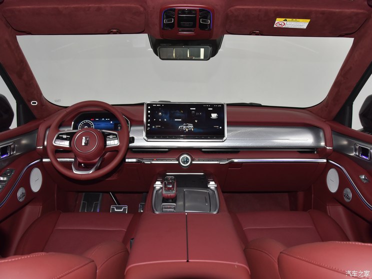 进入车内,新车采用的同样是十分硬派的设计风格,在多种配色以及材质的加持下,车辆内部展现出了与一般家用车不同的整体氛围。同时,新车在中控台布局方面延续了当前比较流行的设计思路,15.6英寸中控屏幕占据C位,但由于它独特的定位,新车中控台设计得比一般家用车型更“厚”一些,这也让设计简洁的中控台看上去没有那么单薄。