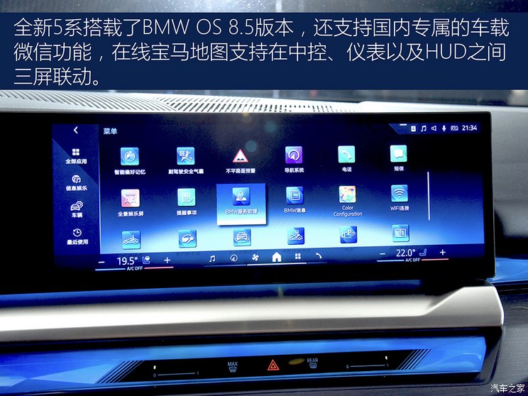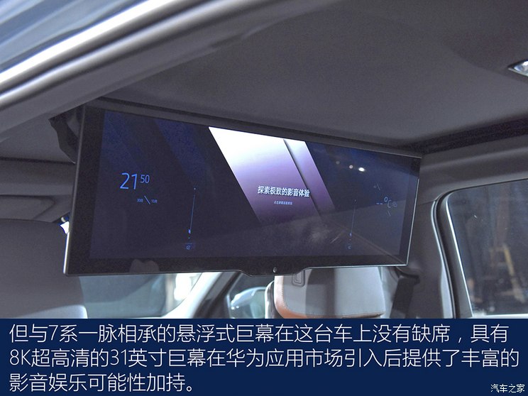 而在后排娱乐系统方面,虽然全新宝马5系的后排舒适配置不如大哥7系那样丰富,但在头顶上与7系一脉相承的悬浮式巨幕却并没有缺席。7系上那块高达8K的31英寸悬浮式屏幕绝对是吸引大家注意的利器,宝马的这块后排娱乐系统生态不仅介入了爱奇艺平台,还引入了华为应用市场,提供了丰富的娱乐可能性――这可是我们在海外版5系上没见过的配置。