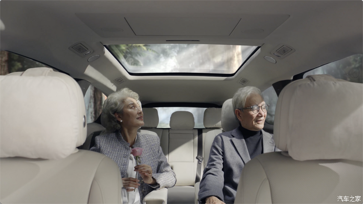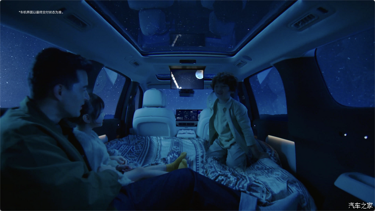 在一家人车内K歌的镜头中,展示了第一排、第二排座椅的大床模式。而另一帧则变成第二排、第三排座椅的大床模式。说明MEGA在座椅的灵活性方面会提供很多组合,具体有多少玩法可以等待官方进一步解密。来到影片的末尾,一家三代人在车内庆生,并拍下了一张自拍照,这是在展示该车拥有的自拍功能。