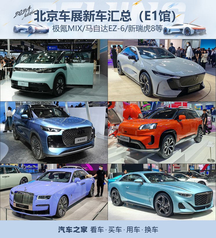 [本站 资讯] 2024北京车展已经拉开了帷幕,本届车展有200余款新车发布/上市,不乏诸多重磅车型。为了方便各位了解新车信息,我们制作了车展新车汇总系列选题,按照展馆的维度为大家盘点了重磅新车。本篇聚焦在豪车云集的E1馆,劳斯莱斯、宾利、兰博基尼以及高端改装商迈莎锐都发布了新产品。此外长安马自达、广汽传祺、广汽埃安、奇瑞、极氪也都有重磅车亮相。比如长安马自达EZ-6、极氪MIX、全新AION V、新瑞虎8等。