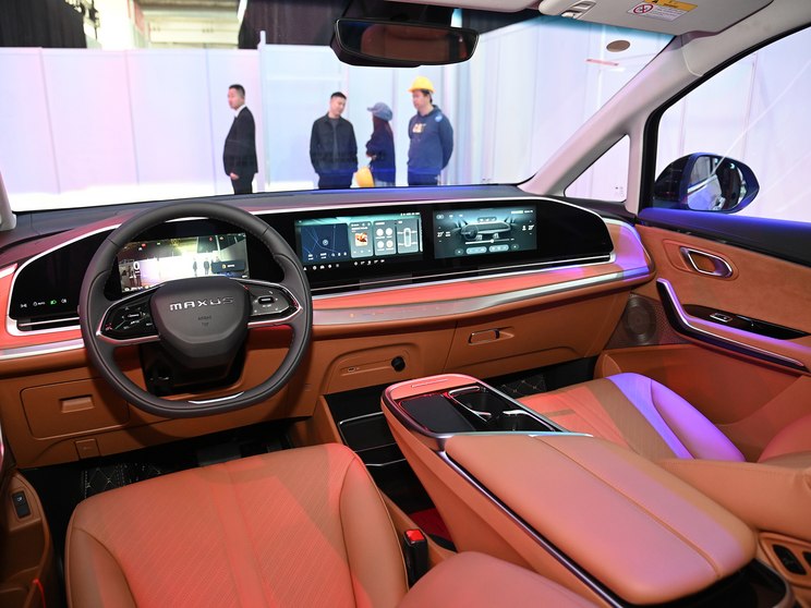 大家9的内饰科技感十足,三块大屏幕+一块互动屏整合在一个平面内,并设计有造型,使得内饰看着不会特别死板。在以屏幕为主的内饰中,按键也都换成了触控的行驶,同时也有软质材料包覆中控台,保证了内饰的豪华感。