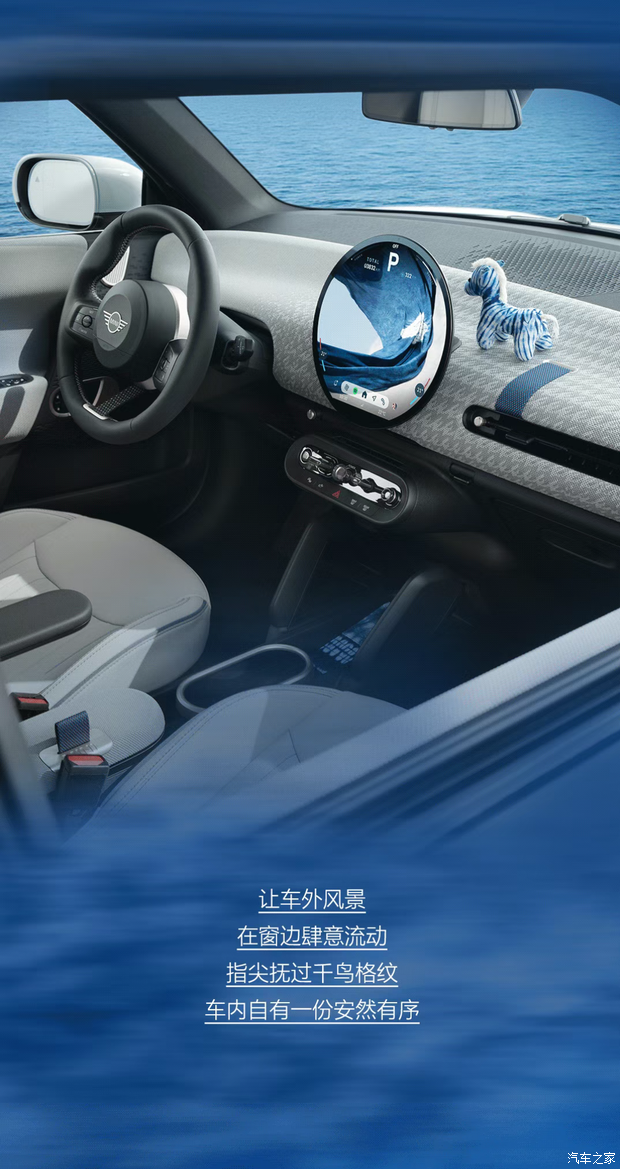 内饰方面,作为限定版车型,其依旧沿用现款车型的主体设计,并在细节之处加入蓝色元素以及千鸟格元素进行点缀,让其有着更强的专属感。其它方面,该车配备9.4英寸中控屏,并集成了MINI OS 9操作系统,界面年轻化程度得到极大的提升,也融入了数字萌宠。共将推出8种“体验模式”——初始模式、卡丁模式、节能模式、放轻松模式、怀旧模式、自定义模式、派对模式以及游牧模式,每种模式都有自己的特定的用户界面。