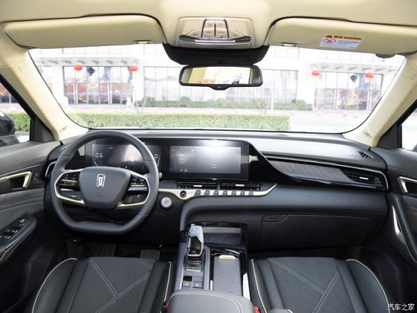 内饰方面,新车采用了环抱式驾舱设计并将中控设计的偏向于主驾驶侧,配合中控台简洁的线条,让其整体极具层次感。细节方面,该车配备了平底式双辐多功能方向盘,搭配由全液晶仪表+大尺寸中控屏组成的一体式连屏设计,使新车科技感得到很好的提升。同时,我们看到该车整体采用了全深色内饰配色,并在车门把手、中控台功能按键周围以及空调出风口等处加入了镀铬元素进行点缀,质感突出。