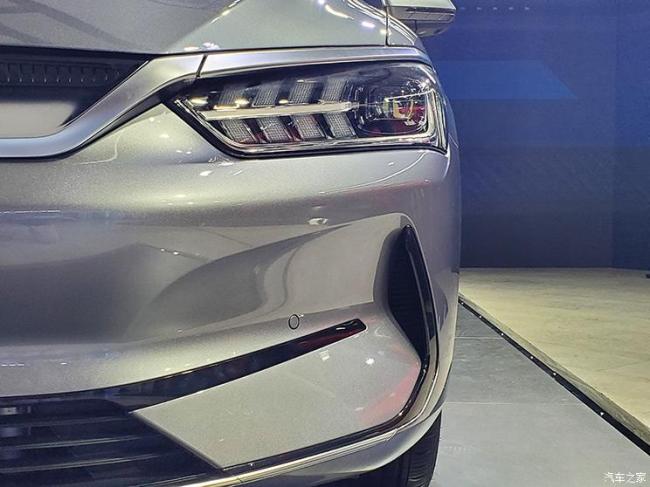 前脸的下半部分采用了与汉EV高度相似的内凹折线设计,使前脸造型中的型面变化更加丰富。而在细节上,延伸至两侧通风口区域的黑色装饰条是秦PLUS EV独有的设计,也进一步拓展了车辆的视觉宽度。