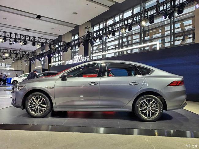 车身侧面造型基本延续了秦PLUS DM-i车型的设计,溜背式的车顶弧线呈现出轿跑的既视感,后轮眉处隆起的腰线也给车辆带来了十足的力量感。车身尺寸方面,秦PLUS EV的长宽高分别为4765/1837/1515mm,轴距则达到了2718mm。