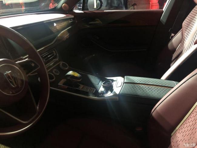 虽然车内并没有开放,但是从照片开看还是细节满满。该车的面板采用的是菱形的纹理,全车的饰条则是金色镀铬处理。座椅靠背、扶手靠背表面都采用了渐变的不规则打孔设计,这样的造型其实是融入了中国文化中的剪纸工艺。值得一提的是,该车的换挡杆结合了故宫的黄琉璃与木纹,皇家气息十足。
