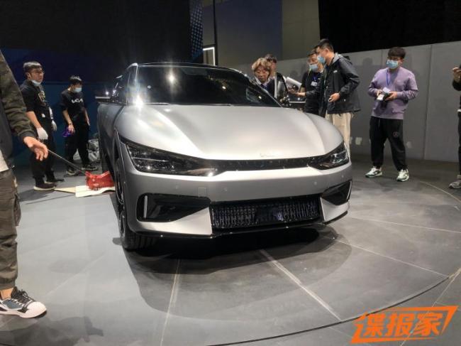 [本站 资讯]2021上海车展即将在4月19日正式开幕。车展开幕前夕,我们在展馆现场拍摄到了起亚全新电动车――EV6 GT的实车。
