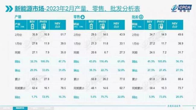 [本站 资讯]日前,乘联会公布了2月乘用车销量情况,此前,1月份遇冷的新能源汽车销量在2月出现了复苏,零售销量43.9万辆,同比增长61%,其中PHEV插电混动零售销量占到14.5万台,同比增长高达116.4%,BEV纯电零售销量29.5万辆,同比增长43%。乘联会表示,今年1月补贴政策切换带来的新能源销量降幅较大,2月新能源车市逐步调整到位,因此销量增长。