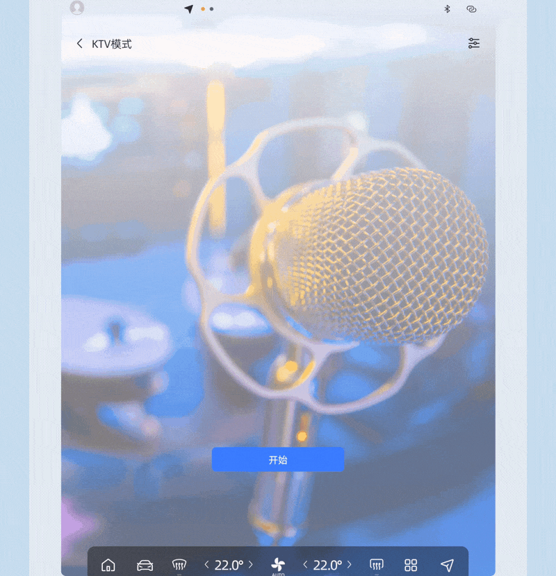 一键进入KTV模式,系统将会自动关闭车窗和天窗,点亮氛围灯,启动香氛,K歌应用也将自动开启,用户还可根据自定义选项打造专属K歌房。