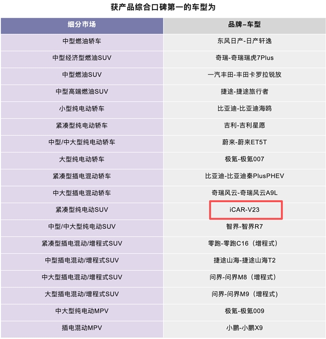 欢迎转载,请注明出处:FT新车网 » 权威报告揭示价值新标准,iCAR V23荣膺细分市场口碑第一