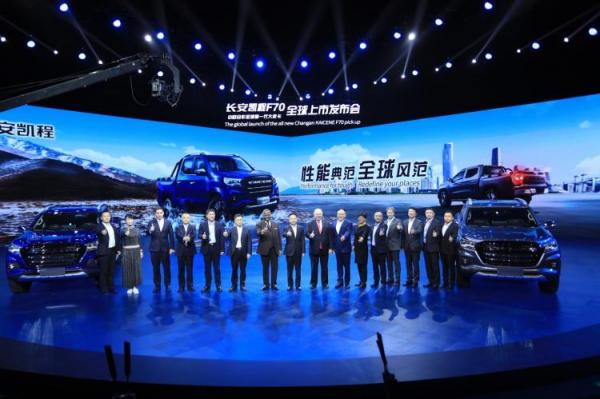 北京时间2019年10月28日,以“性能典范 全球风范”为主题的长安凯程F70全球上市发布会在以北京为主场,覆盖全国60多个地区及海外主力市场同步举行。长安汽车董事长张宝林、智利驻华大使 Luis Schmidt、利比里亚驻华大使Dudley Mckinley Thomas、长安汽车常务副总裁袁明学、长安汽车执行副总裁张竞竞、长安汽车执行副总裁刘正均、长安汽车总裁助理兼轻型车事业部总经理罗志龙以及全球经销商代表、全球供应商代表、全球用户代表、媒体代表,共同见证了这款长安汽车旗下又一重磅车型——中欧合作全球新一代大皮卡长安凯程F70的全球上市。