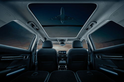 车顶悬浮式行李架如天际双轨横越延伸,为硬朗车身再添巍然天成的气势。同时,空气动力学的流线型设计还可有效降低风阻,兼具造型之美与实用价值。