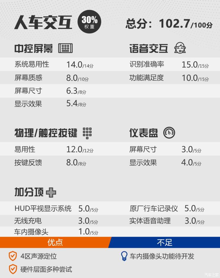 | 排名 | 车型 | 人车交互 | 功能实现 | 服务生态 | 沟通好感度 | 总分 |