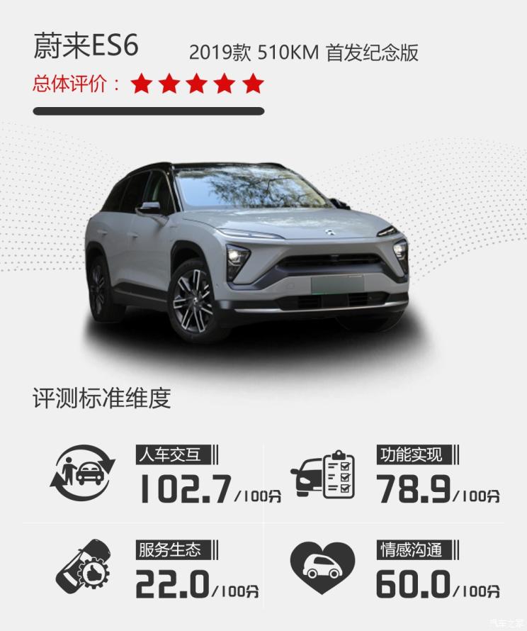 | 1 | 蔚来ES6 | 102.7 | 78.9 | 22.0 | 60.0 | 76.6 |